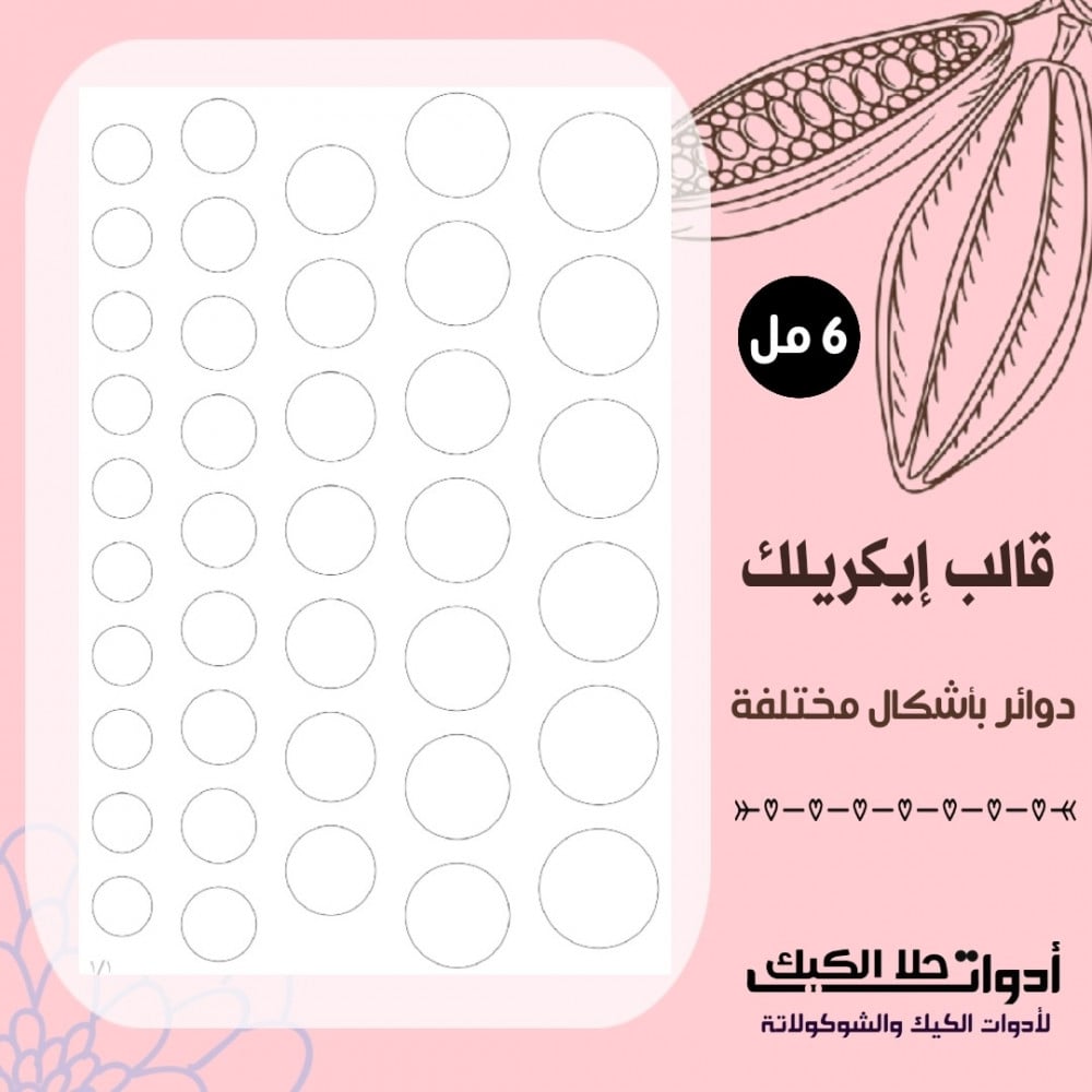 قالب ايكريلك A4 دوائر بأحجام مختلفة ، ( 2سم ، 2.5سم ، 3سم ، 3.5سم ، 4سم ) .